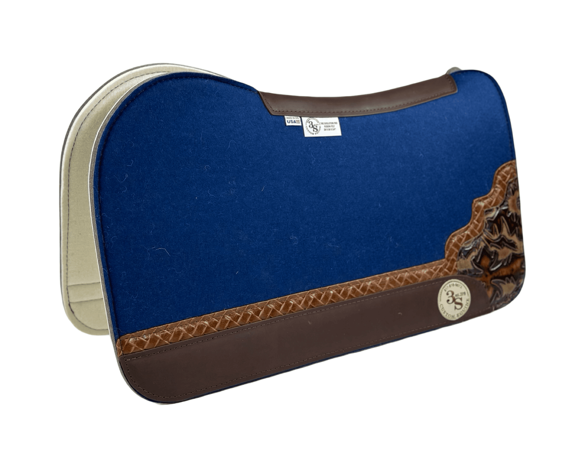 Evolution Pad – 28x30x3/4″ Fusion Felt – Color Pop Midnight Blue – Shadow Corner w/strip 23/30 – Brown Wear leather