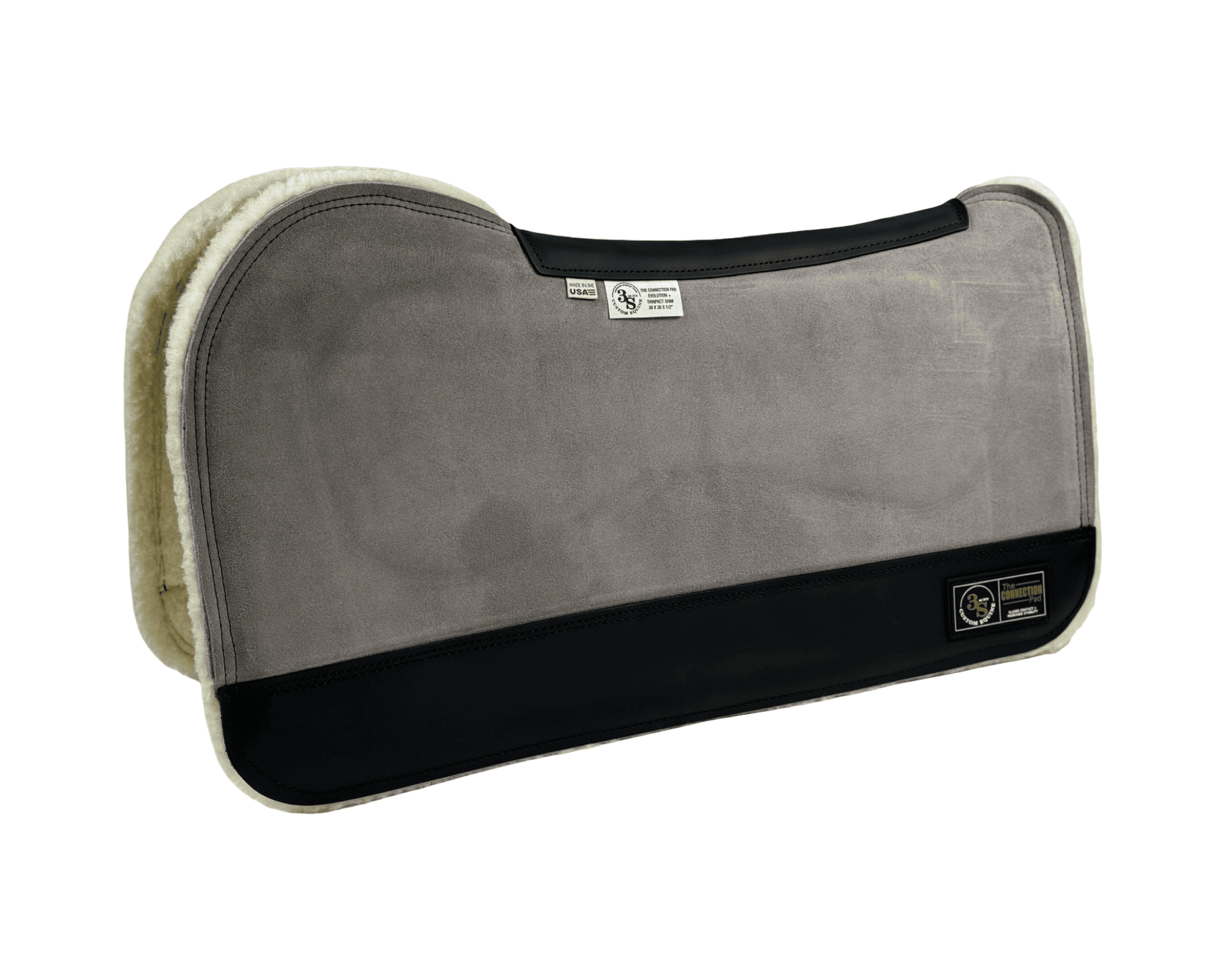 The Connection Pad – Evolution 30x30x1/2” + Thinpact Shim – Grey Velvet Suede – Black wear leather – 100% wool fleece (white)