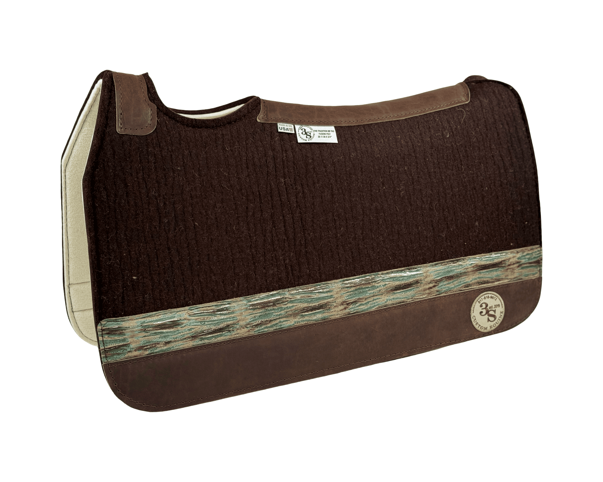 Tradition *HP* Pad – 28x30x3/4″ Fusion Felt – Chocolate #8 Accent Strip – Brown Wear leather