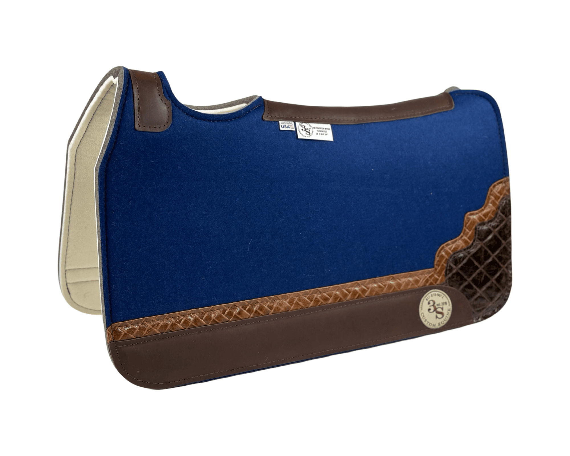 Tradition *HP* Pad – 28x30x3/4″ Fusion Felt – Color Pop Midnight Blue – Shadow Corner w/strip 23/11 – Brown Wear leather