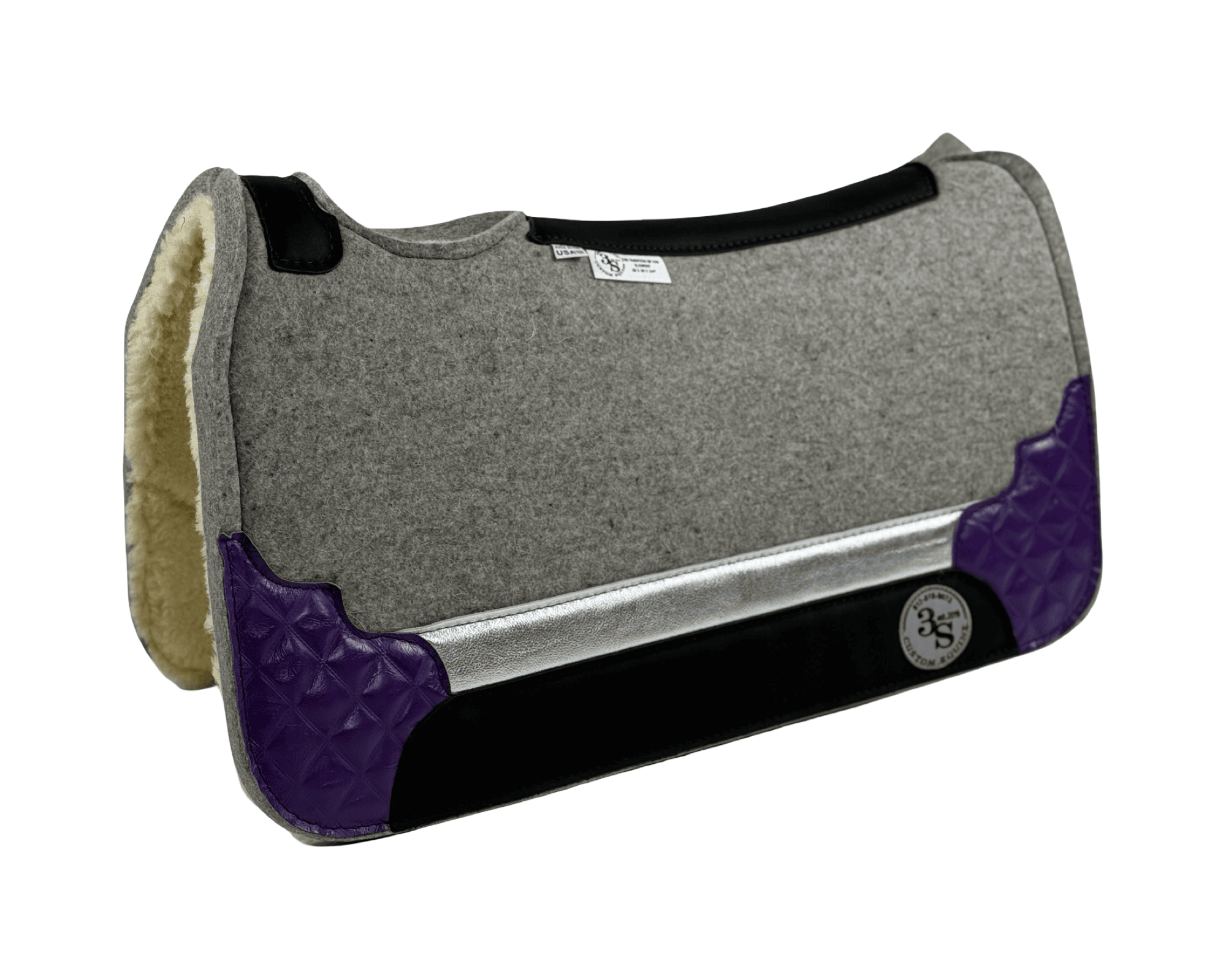 Tradition *HP* Pad – 28x30x3/4″ Element Wool – Dove – Accent Combo 44/52 – Black Wear Leather + Wool Fleece (white)