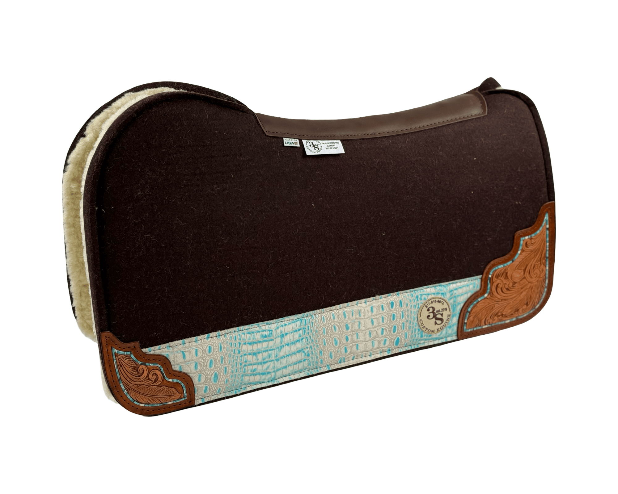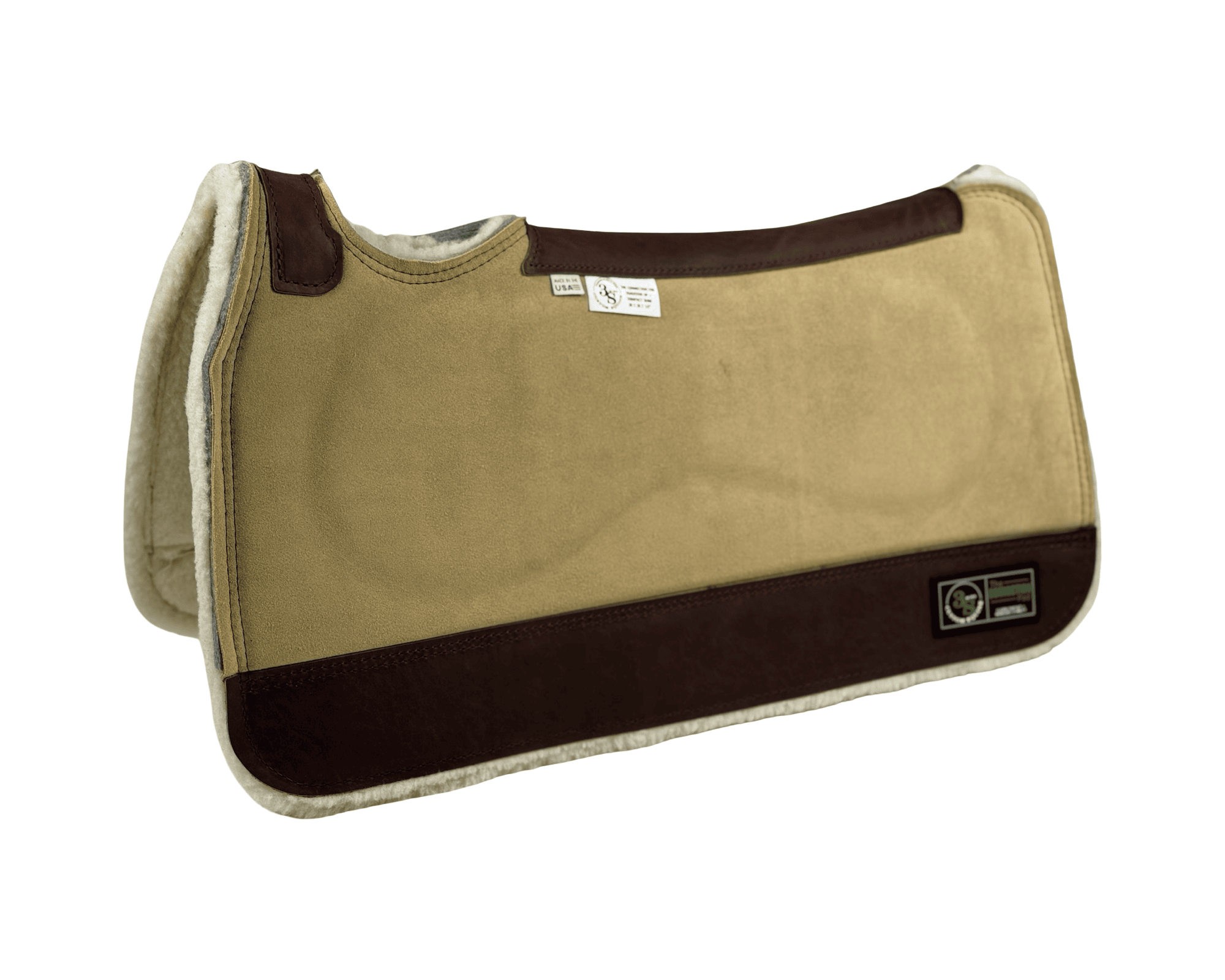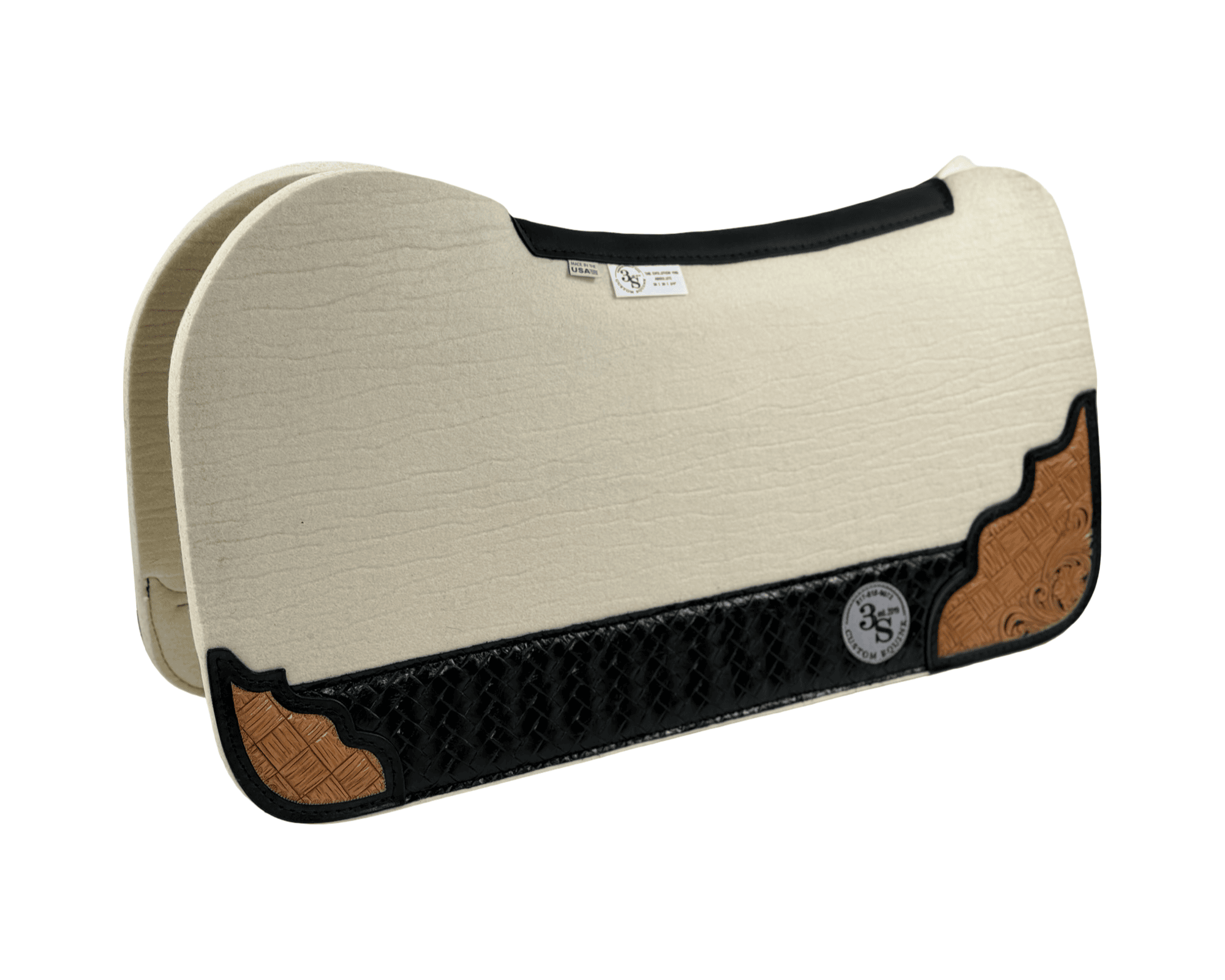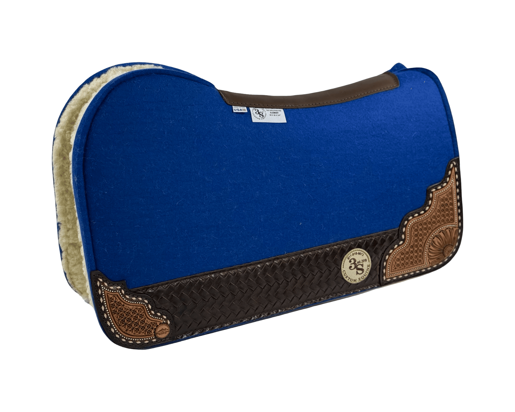 When selecting a wool thickness keep in mind 3/4″ is the most common thickness. This thickness is great for average size withers and a more normal shape back.. 7/8″ and 1” pads are best for a higher wither, more narrow horse, or when you are trying to fill the space on a wider tree. 1/2″ and 5/8″ work best with custom saddles where a thick pad is not needed, and for horses with a rounder back, wide shoulders or low withers to help aid with the saddle rolling.