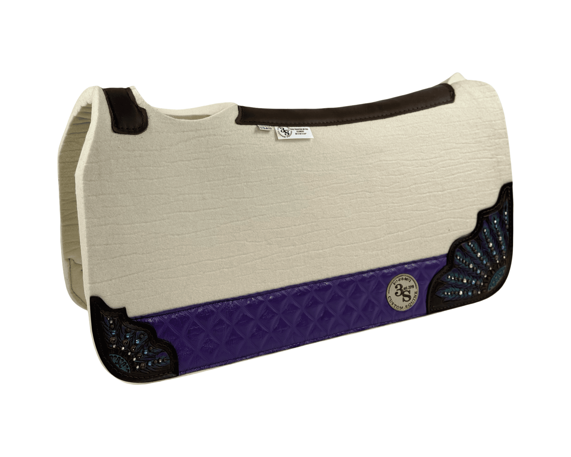 3S saddle pads are designed to be ridden with a minimum of 2” of pad in front of and behind the saddle. This will allow the pad contour to work the best.
